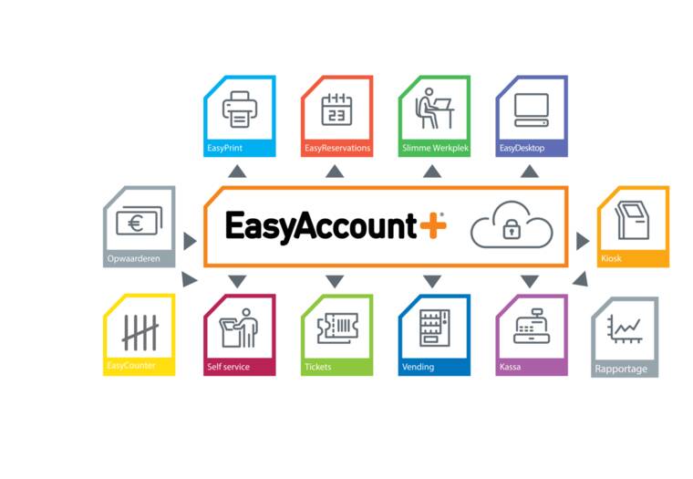 EasyAccount+ (EAP) is een totaaloplossing voor het beheren, betalen en registreren van faciliteiten in de bibliotheek. EAP bestaat uit slimme selfservice modules waarmee je voor leden en niet-leden een uiterst gebruiksvriendelijke (betaal)omgeving creëert. EAP ondersteunt alle bibliotheeksystemen, zoals bijvoorbeeld Wise, V-Smart en Brocade en heeft een koppeling met Single Identity.